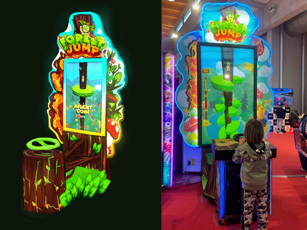 Forest Jump is a cabin/arcade game made by EyeBags Studio Srl in collaboration with Studio MACACO for the artistic aspect.